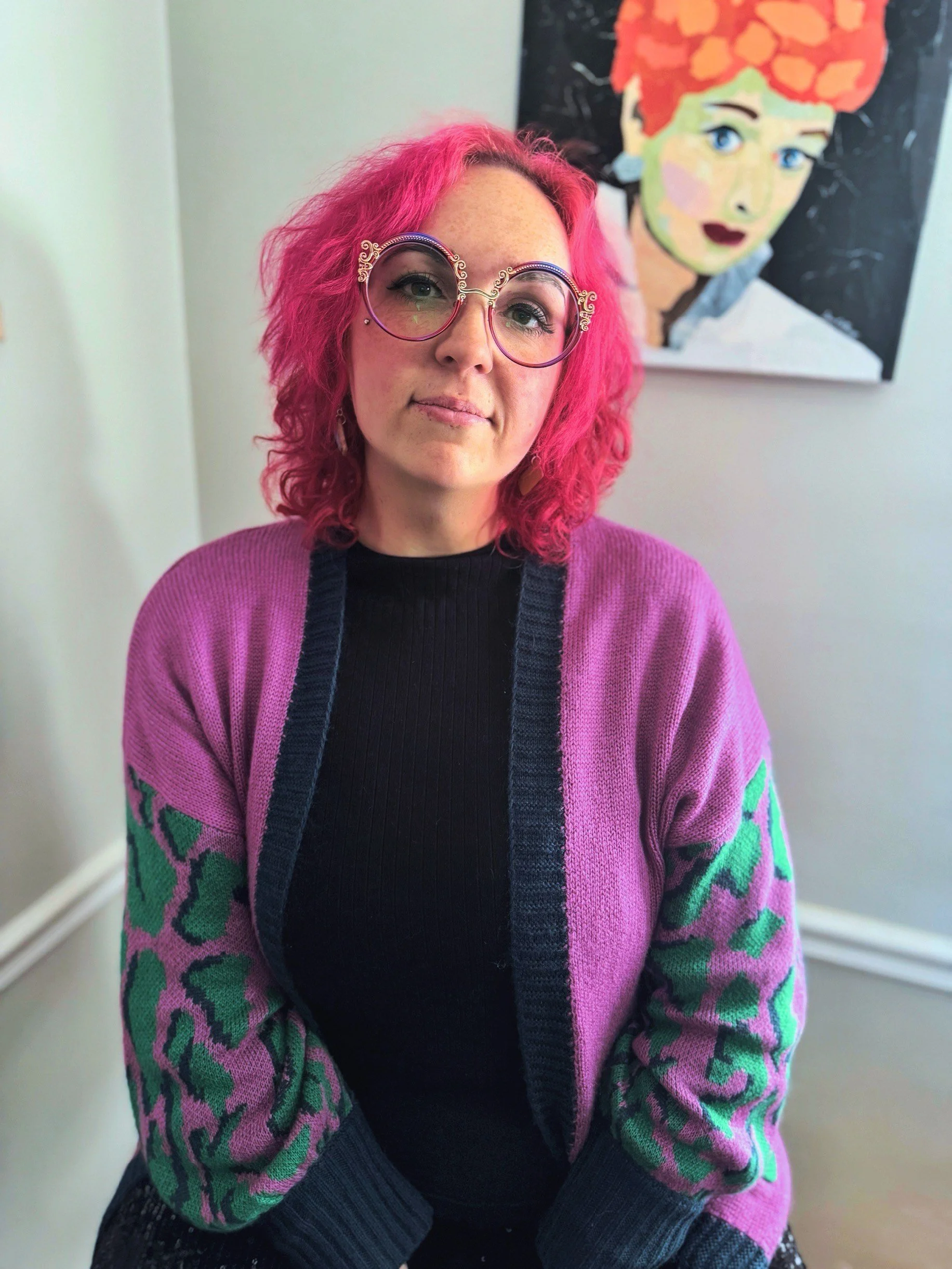 Hey friends! My name is Jenn. I opened my first art studio in February of 2019. I started using epoxy resin and a variety of pigments to create functional, nature inspired art. After discovering my ability to dabble in many different mediums, I decided to focus on my true love- pet & people portraits. And what better material to use than recycled magazines?